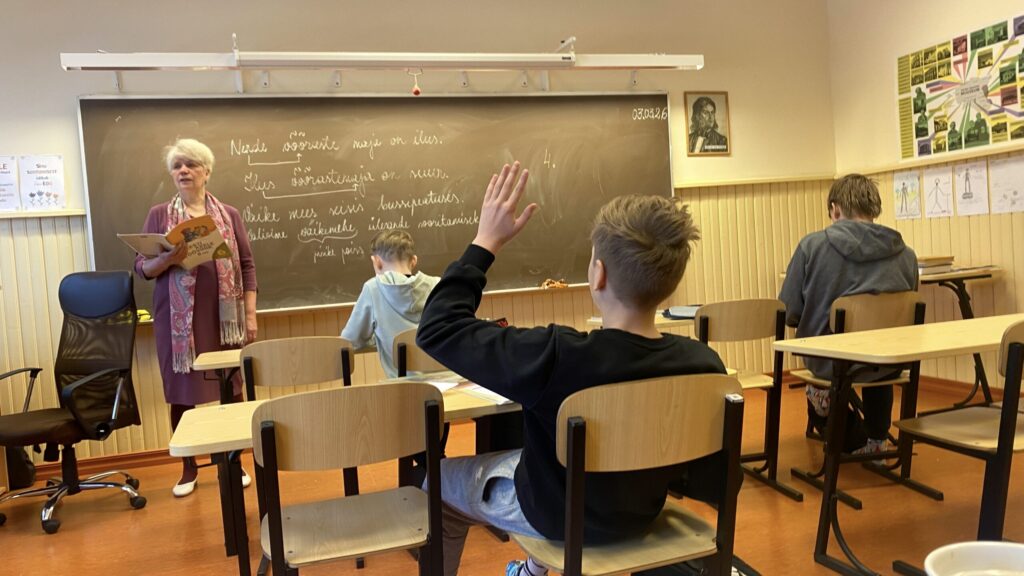 Pruuni tahvli paremasse nurka on valge kriidiga kirjutatud 03.03.26. Õpetaja astub klassi. Poisid tõusevad püsti. “Alustame tunniga,” lausub Luule Oppi. “Istuge.”