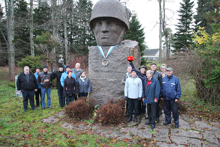 Skulptuuri alusel on tekst “Hiiumaa kaitselahingute kangelastele 1941”. See oli aasta, mil sakslased Hiiumaa punavägede käest vallutasid ja saarel kadus inimesi, kes hiljem leiti tapetuna.