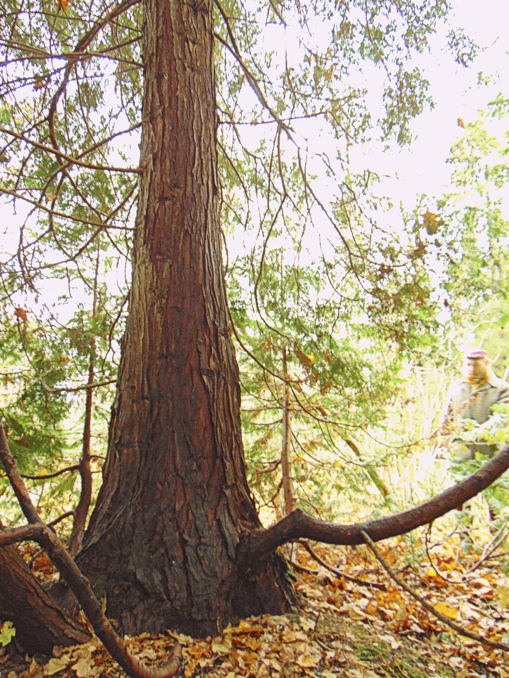 Kahe ja poole meetrine soosekvoia (Taxodium distichum) ilutses silmapaistvas rebasepunases sügisrüüs.