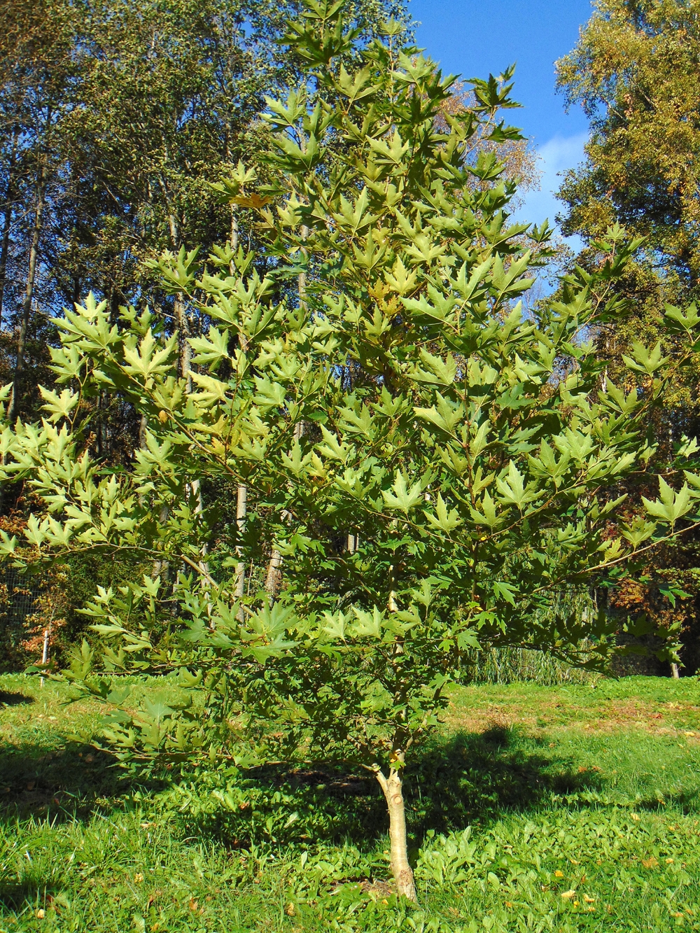 Vahtrad meeldivad küllap enamikule meist, aga nii vägevast valikust mahub siin nimetama vaid mõnda. Selliseid, kes mulle sel käigul rohkem silma torkasid. Üks neist on kindlasti sametjas vaher (Acer velutinum) Kaukaasiast. Ta on tohutu jõulise kasvuga ja võib arvata, et kosub siin hiiglaslikuks. Praegugi juba vägev. Suured rohelised lehed on alt hõbejad, harmoneerudes heleda tüvega.