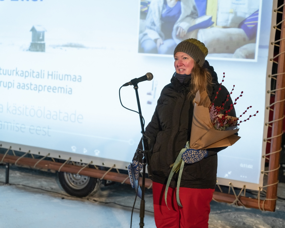 Hiiumaa käsitööseltsi juhatuse liige Nele Eller sai aastapreemia käsitöölaatade korraldamise eest.
