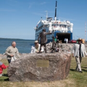 Laupäeval võtsid katte Heltermaa sadamasse püstitatud lõbusalt pronksskulptuurilt “Vanamees ja kits” eestvedajad Ly Meldorf ja Riho Sõrmus ning autorid Simson von Seakyll ja Paul Mänd.