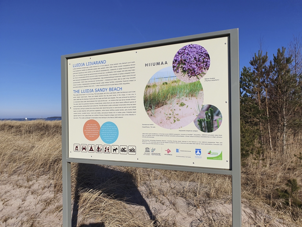 Kaunist Luidja liivaranda tutvustav infotahvel.