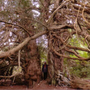Ja siis sattusime Kingley Vale’i kõige imepärasemasse kohta. Siin laiutab lehtvõsas üks hiigeltünjas jugapuu teise järel. Need ongi need viiesajaaastased (väidetakse koguni, et kahe tuhande aastased) veteranid, kellest on alguse saanud ümbritsevad nooremad jugapuumetsad. Seda tänu viimase sajandi jooksul vähenenud karjatamiskoormusele.