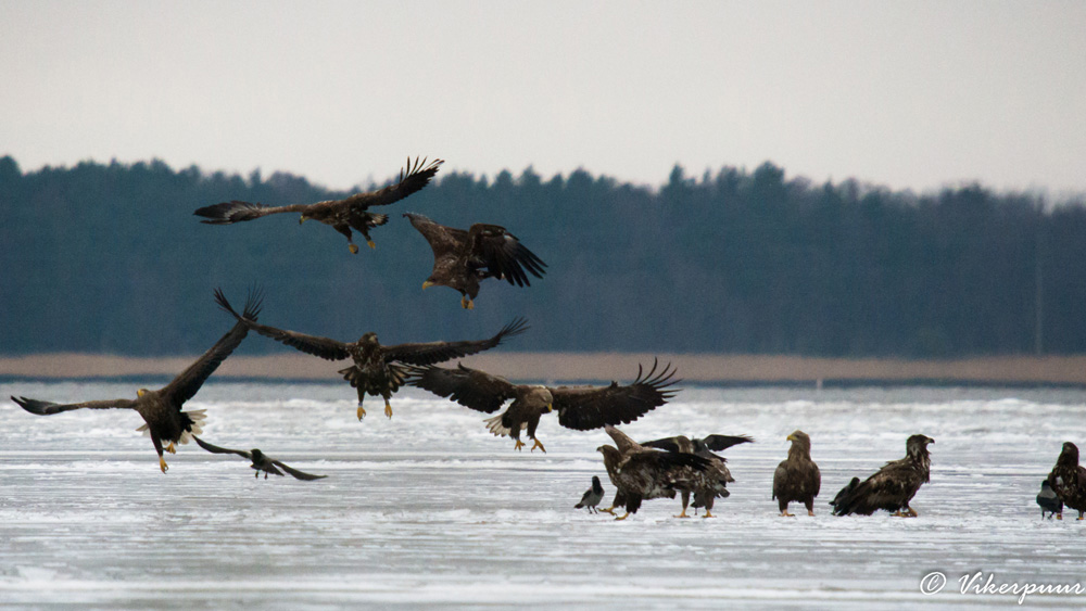 “Kust ja kuidas need kotkad kõik siia oskasid kohale lennata, see jääb saladuseks, aga teada on, et mõned päevad varem olid kohalikud kalamehed käinud kalapüügivahendeid kontrollimas ja ilmselt jäi neist jääle ka kalu. Seal nad siis tülitsesid koos vareste ja haigrutega kalade pärast.”