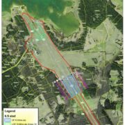 900 meetrit, millest 250 meetrit süvistataks selle pikkuse saamiseks lennurajasse kuni läveni. Sinine viirutatud kriitiline ala aga peab olema puhas nagu apteegis – kännud freesitud, muru niidetud, lumi silutud, maandumisel võivad alal liikuda vaid üksikud inimesed. Ka oranž ala peab olema metsavaba. Nagu näha, peaksime põhja pool ühe majapidamisega kinnistu võtma kõik puudest paljaks, lõunapoolse kinnistu suunas raadama kuni elumajani. Lillaga viirutatud alas võivad puud olla kõrged kuni 5 meetrit. Kuna puu kasvab pidevalt, siis keegi neid heki kombel pealt pügama ei hakka – jällegi tuleks raadata. Ka rohelisega viirutatud ala peab olema metsavaba. Isegi kui lävi läheb nihutamisele (koos lähenemistulede jada algusega) 250 meetrit lennuraja lõpuni, siis teisest otsast pikeneb see jada samavõrd naaberkinnistu sisse ja sisuliselt ei muutuks midagi – ka nihutatud kohas tuleks kogu metsamass raadata.