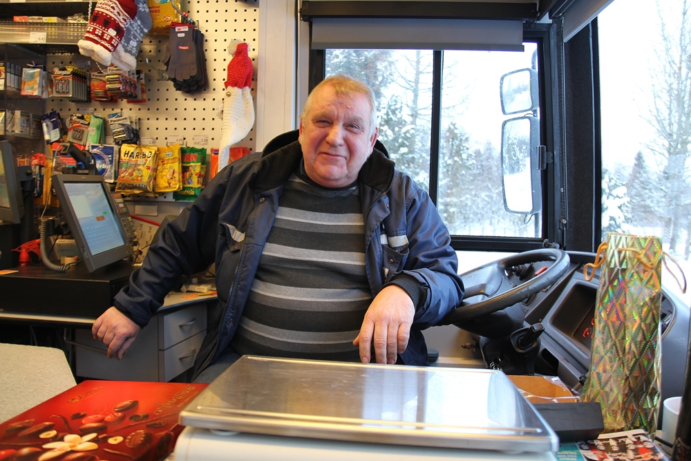 Selveri rõõmsavärviline rändpood oli teel ka jõululaupäeval. Bussijuht Valdi Samm ja müüja Helle Allik ütlesid, et pühadekaupa osteti ka sel päeval hoolega. “Verivorstid, piparkoogid, kommid ja värgid ning muidugi tavakaup, mida iga kord ostetakse,” loetles Helle.
