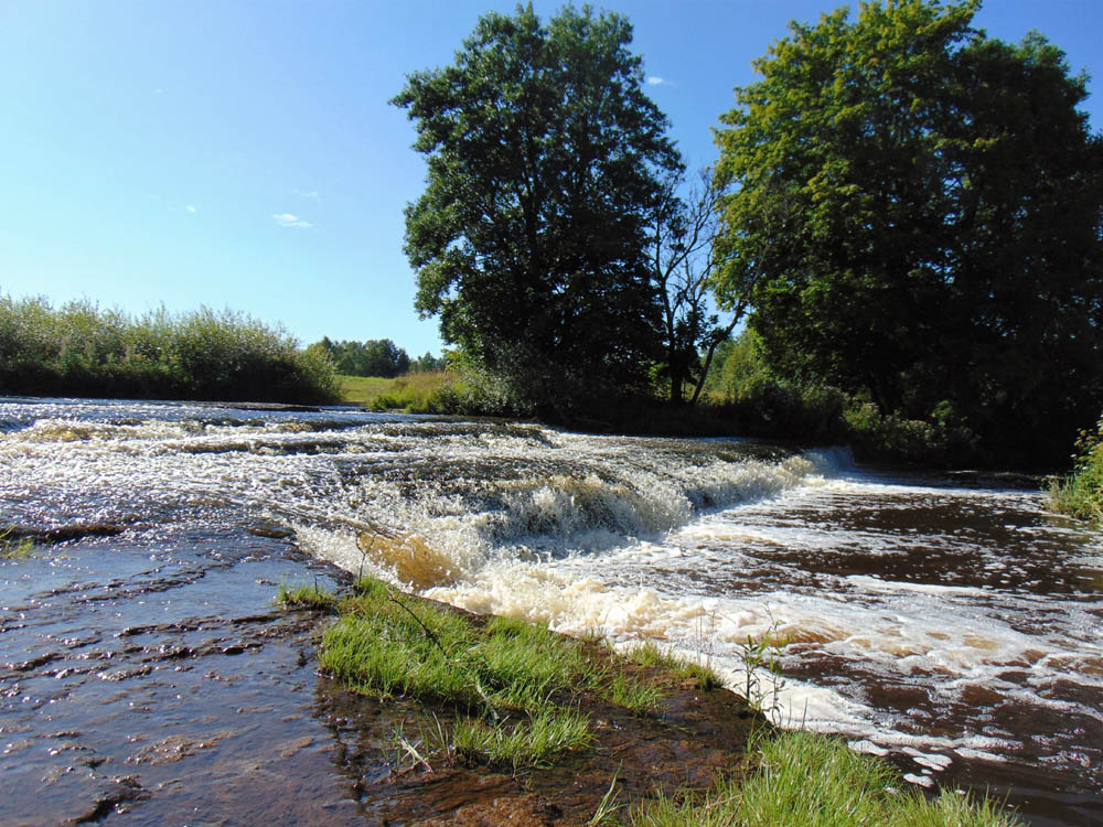 Mõnus oli kõndida paepealse jahedas madalvees ja trepistikku lähemalt uudistada. Üldilmelt polegi siin tegu mitte nii väga joa, kui rohkem kosega. Aga ta meeldis mulle seetõttu ehk rohkemgi. See vee jõud, need tormlevad päikses sillerdavad sööstud. Paremkaldal eendus kuue jala kõrgune paepank. Joast allavoolu asuval saarel õitses minukõrgune vägev vesikanepitihnik, täis mesilasi. Veepahina sekka kostus tirtsude sirinat. Kaldail õitsesid lisaks muule metsvitsad ja jumikad. Küpse suve pärastlõuna säärases erilises kohas.