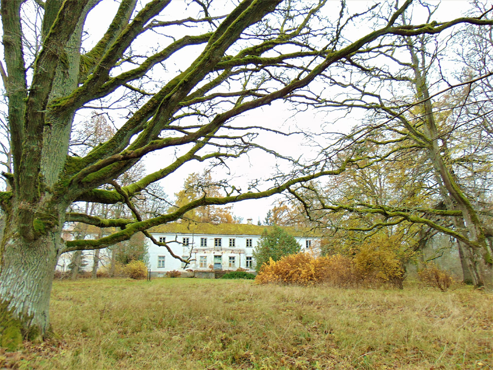 Sel 12. novembri hommikul sattusin Polli parki üldse esmakordselt elus. Hoolimata hilisest aastaajast pruunkollendasid pargis veel uhked lehised, kollases leherüüs seisid suurelehised pärnad. Kikkapuudel leidus punaseid lehti ja tumeroosasid vilju, lehehaljust lumemarjapõõsail ja kuslapuil. Isegi üks hilistunud kurekellukas õitses veel. Mitmel pool häärberitaguse välu servis sirutasid samblaseid oksi tammepuud. Nende naabruses punavõrseliste siberi kontpuude rühmad.