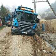 Esmaspäeval jäi ASi Keskkonnateenused jäätmeveok ehitusjärgus Kärdla tänavatel kinni lausa kolmel korral. Kopli tänaval, kus on tehtud kaevetöid ja tänavakatendid veel taastamata, vajus veok (pildil) kraavi nii tõsiselt, et selle väljasikutamiseks kulus ligi viis tundi.
