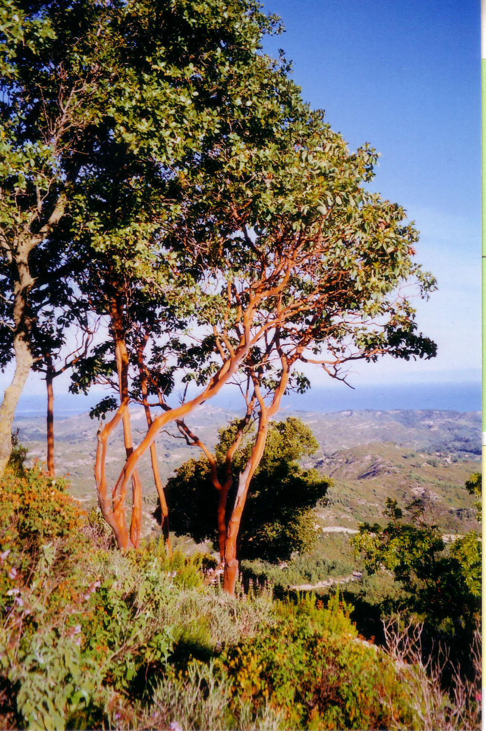 Ka maasikapuid olid kõik kohad täis. Nii harilikku (Arbutus unedo) kui punast maasikapuud (Arbutus andrachne). Punane maasikapuu on idapoolsema levikuga, olles Kreekas sage, ulatudes põhjas suisa Krimmini. Tema otsekui poleeritult siledad punased (vahel ka helerohelised) tüved on väga pilkupüüdvad. Iseäranis kauni rühma leidsin telkimisjärgsel hommikul Iliase mäe põhjanõlvalt. Sumisevast õiterikkast früüganast kerkisid hommikupäikeses uskumatult silepunased maasikapuutüved, taustal hele-hele koobaltivärvi väina taga hägus sinamas Kreekale kuuluv Symi saar ja Türgile kuuluvad Väike-Aasia mäed.