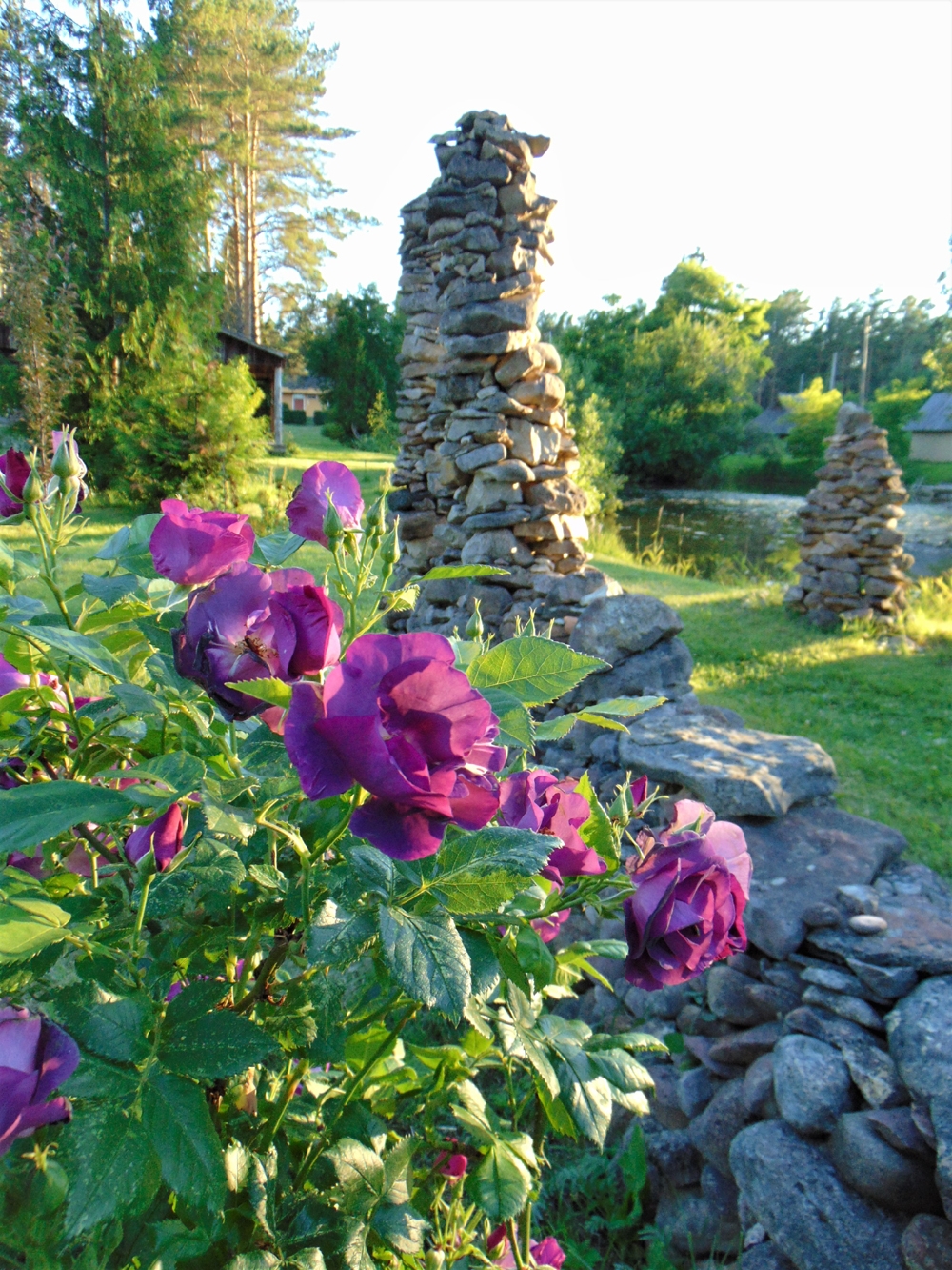 Peale toda külaskäiku hakkasin oma kodutiigi taha planeerima rooside alleed. Ainult plaaniks on see siiski jäänudki. Ei saa minust siiski roosikasvatajat. Ehkki ‘Rhapsody in Blue’ õitekuhil kiviaia veeres korraks küsima paneb: kui siiski soetaks paar roosi juurde? Kuid seejärel rändab pilk miskipärast kiduma hakanud ‘Blütezauberile’ ja see soov haihtub sama kiirelt kui tekkis.