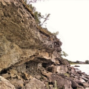 Ronisin alla. Mäherdune sügav kulbas siin maapõue uuristub! On vaid aja küsimus, mil see pea kohal rippuv kaljukiht järele annab ja maha prantsatab. Samas kõrval eristus muust krobeline biohermikeha.