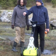 Olav Harjo osaühingust Elermo saabus Hiiumaale reedese päeva hommikul koguni kahe georadariga – üks väiksem 2D ja teine suurem 3D. Esimesega oli plaanis läbi käia kivikuheliku otsene ümbrus, suurema ja võimsamaga nende kõrvale jääv muruplats. Nii lihtsalt see kõik ometi ei läinud. Selle asemel, et paralleelselt üks mees ühel, teine teisel platsil masinatega ringi käia ja rõõmsalt tööd teha, tuli ühel hetkel pead hoopis kokku panna, kuidas aastaid niitmata mätlikul muruplatsil üldse uurimist läbi viia.