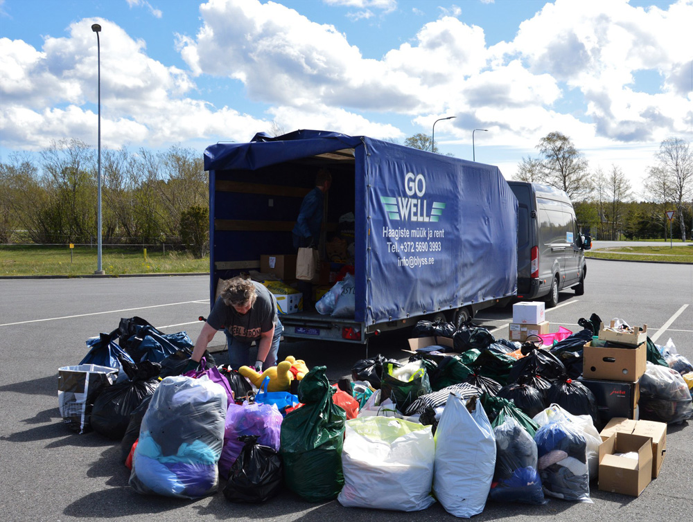Uukasutusringi viimane kogumiskoht Kärdlas Selveri parklas.Uuskasutuskeskuse töötajad jäid hiidlaste annetatud asjade kvaliteediga rahule, ainult mõned rõivad võinuks olla paremas korras.