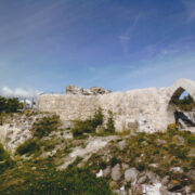 Kalasadama hooned trügivad otse linnuse külje alla välja. Ja naabruses vehkisid tiibadega kolakad tuugenid. Kuis nood küll nii otse asula serva saadi ehitada? Aga jah, linnus. Kui mitte kauges minevikus kössutas siin pigem kuhil kive, siis nüüd valendab vastu dolomiitklompidest sein, terav gootikaareline sissepääs selles. Edelatorni väliskülg on üles laotud 4 meetri jagu. Müüride allosas on sekka näha maakivi, ülemine osa aga juba puha hele dolomiit. Valged müürid ja taustal päikses sinav meri – valdas vahemereliste antiikvaremete tunne.